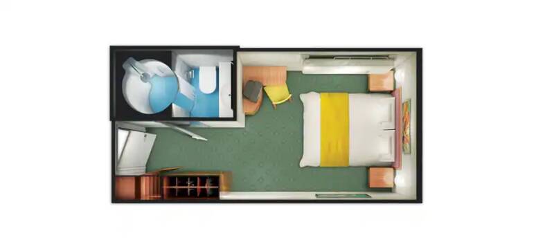 Met een queen-size bed en een slimme, efficiënte indeling is dit de ideale keuze voor wie solo reist en comfortabel wil verblijven zonder single supplement.