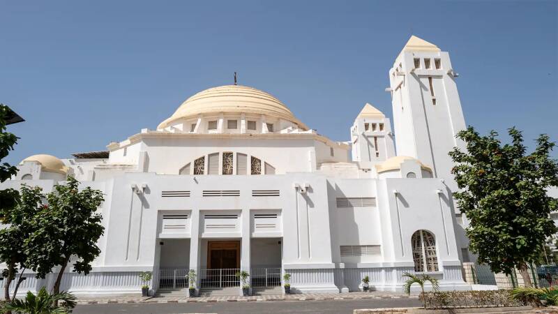 Langs de route passeerden we indrukwekkende bezienswaardigheden zoals de Grote Moskee, ontworpen door Franse en Marokkaanse architecten, en het imposante Presidentieel Paleis. Bij de Millenniumpoort maakten we een fotostop – dit monument markeert Senegal’s entree in de 21e eeuw.
